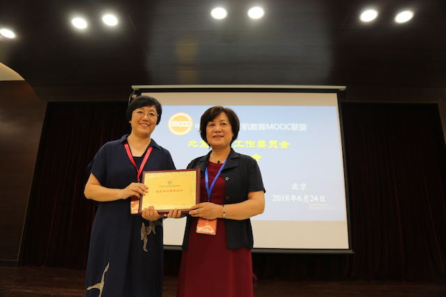 中国高校计算机教育MOOC联盟副秘书长、清华大学刘强教授代表联盟向北京市工作委员会授牌,北京市工作委员会主任、德赢AC米兰官网李凤霞教授代表工委接受了联盟授牌。李凤霞教授介绍了北京市工作委员会的情况和下一步的工作计划。