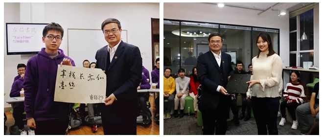 活动中,睿信书院、精工书院和明德书院的学生代表向张军校长赠送了自己创作的作品。