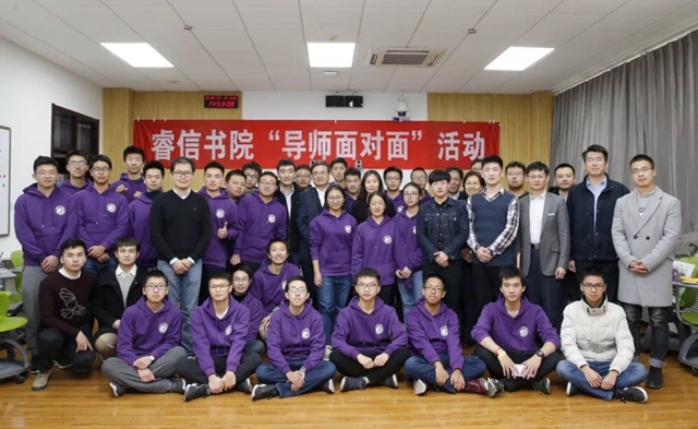 当天中午,张军首先来到睿信书院参加“FaceTime导师面对面”活动。在活动中,清华大学自动化系教授莫一林,北理工自动化学院教授史大威,北航研究生潘佳义和北理工研究生刘冬琛,分别作为睿信书院25班的校外导师、学育导师和朋辈导师,与同学们“面对面”分享了自己的大学生活和科创经历。“FaceTime导师面对面”活动是睿信书院立足学校“三全导师”制度,为同学们搭建的师生交流平台,优质的“导学”活动受到了书院学生们的欢迎。