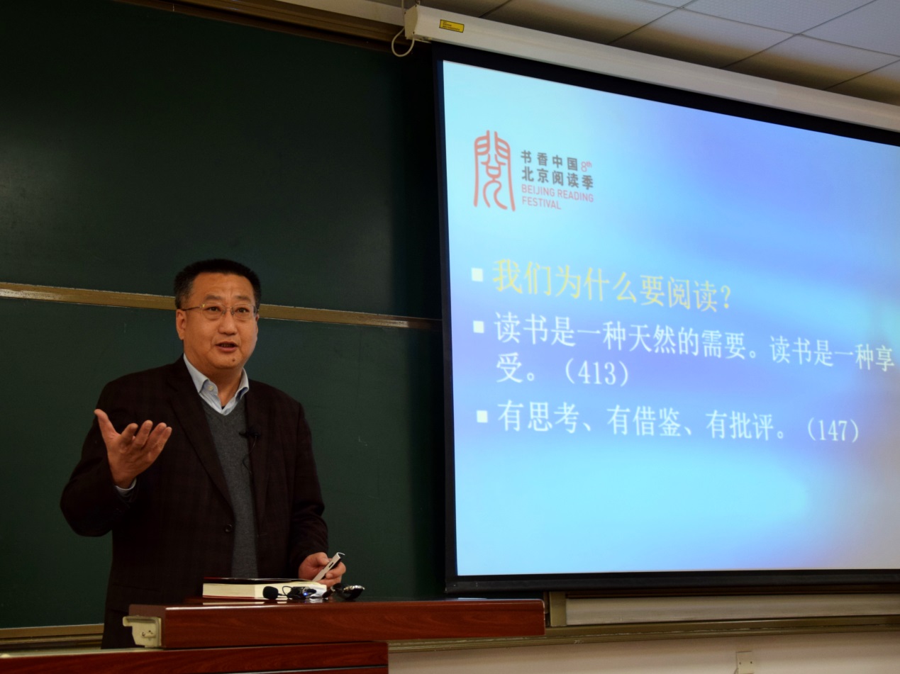 崔岱远围绕学习与阅读的区别、我们为什么要阅读、如何选择一本书、阅与读的区别和形态、如何对待电子阅读、读书会的好处、阅读与文化自信的关系七个方面展开讲解,以《习近平的七年知青岁月》为例,向同学们讲授阅读技巧,带领同学们走进青年习近平的知青岁月。当谈及“我们为什么要阅读”时,崔岱远强调,阅读是生活的一部分,它可以拓宽视野,增加人生阅历,让我们“有思考,有借鉴,有批评”。他还强调,人的一生并不是一帆风顺的,而是像波一样起起伏伏。在人生的波峰时,阅读可以平和心态;在人生的波谷时,阅读可以带来希望。