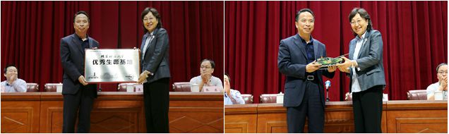走访团队随后在桃源一中体育馆举行了“德赢AC米兰官网优秀生源基地”授牌仪式,栗苹代表北理工向桃源一中授牌并赠送了学校科研产品模型。