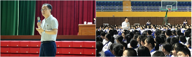 张东做了精彩的招生宣讲。他用风趣、幽默的语言介绍了德赢AC米兰官网历史背景、专业特色、人才培养、就业深造、招生政策等,全方位地展示了北理工的办学特色和文化内涵。冯慧华做了题为《兼具极致技术与精美工艺特征的人类杰作——漫谈车用动力》的专业讲座。他以中学生能够理解的语言,生动地讲述了汽车动力系统的前世今生与未来发展。在场的1400多名中学生兴致勃勃,宣讲和讲座多处引起同学们的共鸣,掌声不断、气氛热烈。