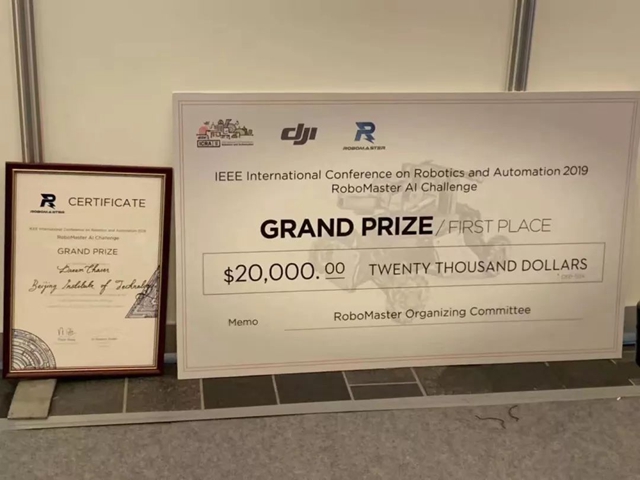 ICRA 2019 RoboMaster总决赛于2019年5月21日和22日在加拿大蒙特利尔会议中心举行,北理工机器人“Dream Chaser”战队在小组赛和淘汰赛的激烈对战中,准确、稳定、智能地完成了机器人自主定位、目标识别与跟踪、路径规划、自主决策和协同控制等挑战性任务,先后战胜美国弗吉尼亚大学、印度理工学院和来自中国的东北大学、中科院自动化所、西安交通大学、浙江大学代表队,最终以不败战绩斩获本次国际挑战赛总冠军。