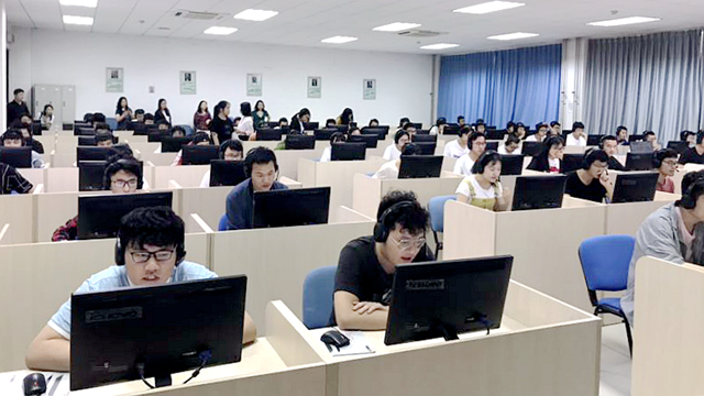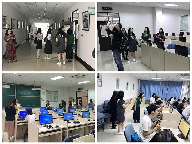 德赢AC米兰官网自2017年开始实现大学英语期末口语机考,目前各个考试环节非常规范。从学生网上约考,到保安人员协助封闭考试区域、组织考生排队进楼,考生进入备考教室,监考教师查验证件、签到、强调考试注意事项,考生调试耳麦,口语考试,集体安静离场。西南民族大学调研团队对我校大学英语期末口语考试的组织与安排表达了极高的认可度,并计划回校后也采取口语机考的考试模式。