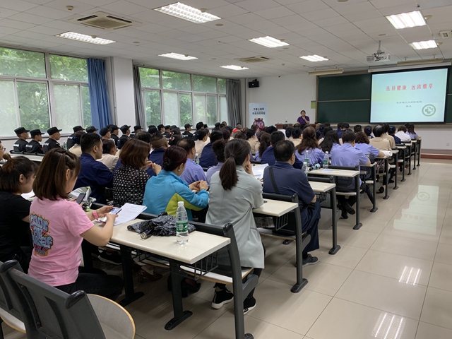 为进一步从专业角度解读烟草危害性,警醒广大师生主动戒烟,后勤基建处与校医院分别于6月5日、6日在中关村校区研教楼308教室、良乡校区2号教学楼A201教室举办了两场控烟知识讲座,并通过校园网发布了相关通知,来自两个校区的教职工共计130余人参加,校医院陈元医师现场讲授。陈元五要素解释了“生命的质量”的涵义,健康之于人生是第一要素;结合世卫组织发布的权威数据说明了吸烟是低收入和中等收入国家中致贫、致死的重要原因;从病理角度阐述了吸烟对心脑血管、呼吸道、消化道、大脑、胎儿的直接影响以及致癌因素;从医学角度解释了烟草成瘾因素及可戒断性,介绍了“戒烟五步法”。陈元希望大家了解专业知识,主动戒烟、杜绝二手烟。