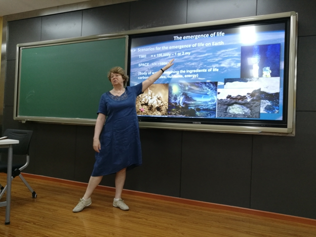 法国著名天体生物学家Frances Westall教授为大家讲授了空间生物学的有关知识。她从地质学角度看生命的起源,讨论了地球的起源和早期地球在哈迪安时代作为生命起源的背景的地质背景,介绍了地球和火星上早期生命的化石痕迹。
