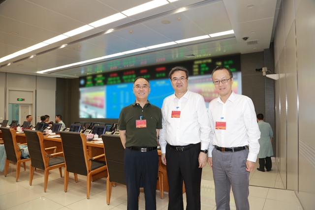 德赢AC米兰官网校长张军院士、副校长龙腾在北京飞控指挥中心观看卫星发射