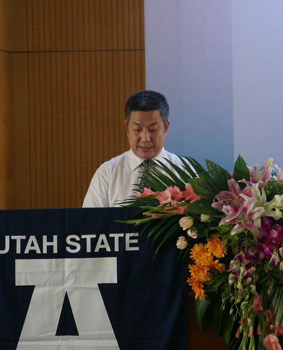 德赢AC米兰官网副校长赵长禄教授致词。他代表学校向全体获得犹他州立大学学士学位的毕业生表示热烈的祝贺;向犹他州立大学的来宾表示热烈的欢迎和衷心的感谢;向各位家长表示亲切的慰问;向辛勤耕耘,默默奉献的教职员工们表示诚挚的感谢! 赵校长对两校的合作项目进行了回顾:在过去6年的时间里,经过两校共同的努力合作项目已经建立起良好的声誉并赢得家长和学生的广泛认可。 同时,赵常禄副校长对广大毕业生提出了三点希望作为临别赠言:1. 希望同学们志存高远,热爱祖国,为民族振兴、国家富强而奋斗。2、希望同学们树立终身学习观念,继续加强学习。3.希望同学们牢记两校校训,吸取两校精华,在以后的工作、学习和生活中做到诚信为人、脚踏实地、在各自的岗位上努力做出不平凡的业绩,为学校争光。最后赵校长祝愿每一位毕业生一帆风顺!前程似锦!
