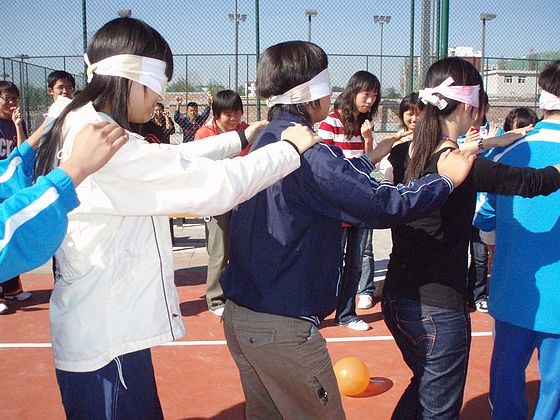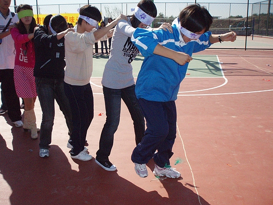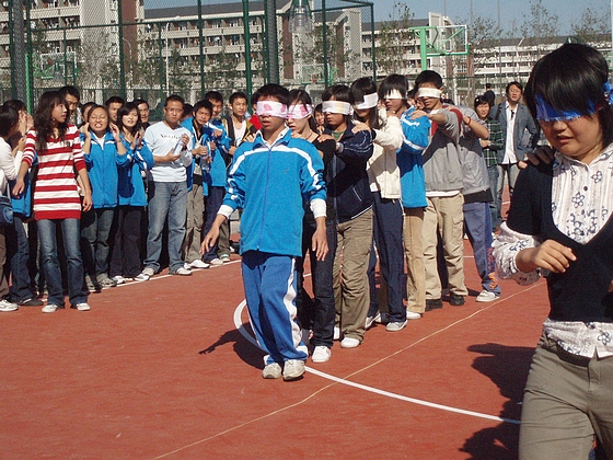 本次活动分为盲人引路、六人七足、空间大战、打沙包、混合接力等环节,大家在活动中表现出来的积极与热情让我们看到了管院新生力量的朝气: