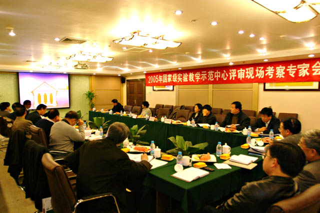 2005年12月22日,教育部2005年国家级实验教学示范中心评审现场考察专家会在我校国际教育交流大厦三层第五会议室举行,教育部高等教育司杨志坚副司长、实验室处孙丽为处长和二十位评审专家参加了此次会议。受教育部高等教育司委托,我校实验室设备处承担了会务工作。