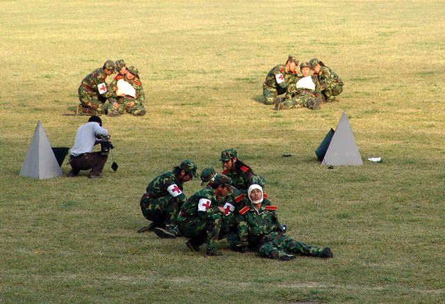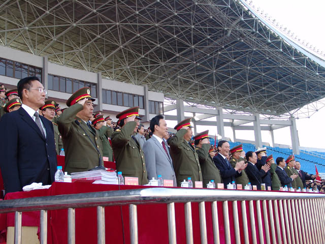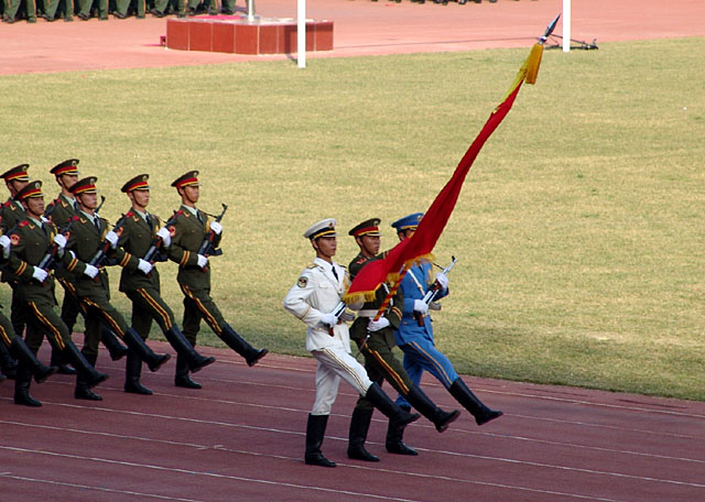 中央军委副主席曹刚川、教育部部长周济、北京市市长王岐山等领导在主席台上观看了精彩表演。