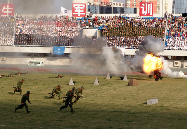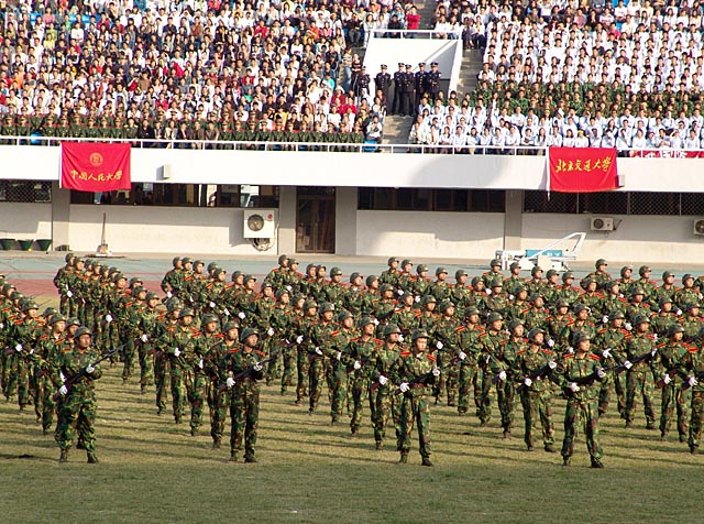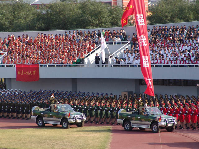 2005年是我国军训工作开展20周年,为展示学生军训工作的成果,加大学生军训工作宣传力度,扩大学生军训工作在全国的影响,10月16日下午,北京市教育委员会、北京卫戍区在丰台体育中心共同组织了首都庆祝学生军训20周年大会。
