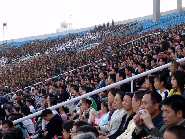 来自首都各高校、军事院校、部队的数万名观众参加了庆祝大会。