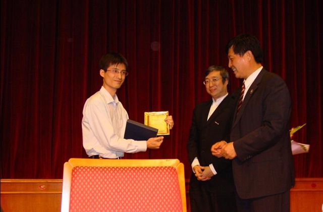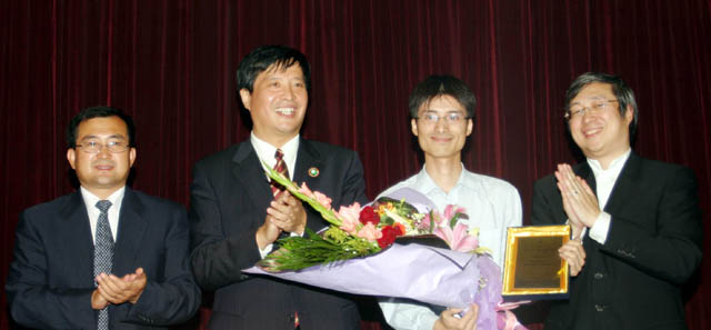 2005年9月27日晚,校党委副书记侯光明教授和著名华裔计算机科学家现任微软亚洲研究院高级研究员许峰雄博士为徐一华颁发了证书。