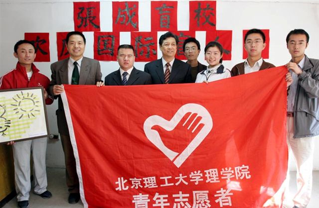 10月14日,国际盲人节的前一天,理学院青年志愿者协会一行五人在学院分团委副书记李明智老师和安泰老师的带领下来到了位于丰台区的张成盲人专科学校,和那里的盲人学生共同庆祝国际盲人节。