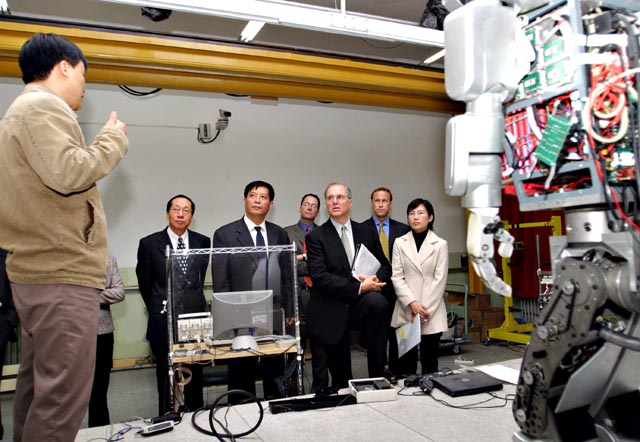 代表团一行在侯光明副书记和杨树兴副校长的引导下参观了机器人实验室与计算中心。