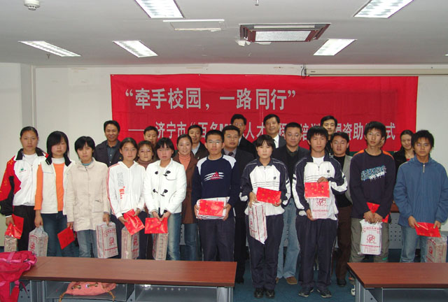 为帮助在校特困生正确面对困难,努力克服困难,安心完成学业,济宁市“百名MBA人才工程”培训班开展了以“我们是兄弟姐妹,我们同在一个校园,让我们牵起手来,一路同行,共同面对困难,共渡难关,共创美好未来”为主题的“牵手校园,一路同行”帮扶特困生助学活动。活动在资金帮扶的基础上,注重加强与贫困生的思想沟通和情感交流,由培训班全体学员推举的学员代表定期与受助特困生开展座谈或联谊活动。