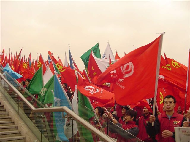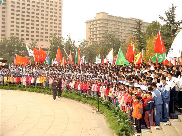 我校“延河之星”志愿者在此次活动担任旗阵的任务,同学们七点钟从学校出发,十一点半从世纪坛返回,不少同学都没有来得及吃早饭,但在整个活动中仍然表现出了良好的精神风貌和工作积极性,得到团市委领导的好评。