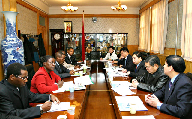 我校于2004年7月与卢旺达政府签订合作培养留学生协议。双方就培养留学生的具体细则进行了进一步协商,达成了友好共识。会谈由杨树兴副校长主持,参加会谈的还有留学生中心张卓立主任,王恩林副主任以及国际交流合作处何中一老师。