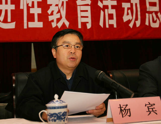 杨宾作重要讲话,他指出,我校始终按照中央和北京市委教育工委关于开展先进性教育活动的指导思想、目标要求和指导原则,根据学校下半年先进性教育领导小组的部署,紧密结合学校和参加本次先进性教育活动党员的实际,精心组织,周密实施,切实抓好学习动员、分析评议、整改提高三个阶段各个环节工作的组织落实。主要表现在:一是认真做好准备工作;二是抓好学习动员,认真开展大讨论;三是深入开展分析评议;四是扎实抓好整改提高;五是切实做好总结测评。他强调,我校在整个先进性教育活动中,各级党组织以高度的政治责任感,始终加强领导,履行职责,精心组织,积极创新,表现出七个主要特点。这七个特点分别是:一、坚持经常性教育与适当的集中教育相结合,是加强党的建设的有效途径;二、努力使先进性教育活动成为群众满意工程,是取得先进性成效的关键;三、党员严肃认真,党支部高度负责;四、坚持区分情况,分类指导;五、坚持正面教育,调动党员自我教育的主观能动性;六、精心组织,严格把关,建立指导员全程指导的工作机制;七、加强先进性教育活动的宣传工作。 杨宾在总结下半年先进性教育活动取得的主要成效时表示,我校在学习和实践“三个代表”重要思想,明确先进性基本要求、具体要求和实践途径,提高党员素质,以实际行动促进学习和工作等方面均取得了良好的效果,较好的实现了目标要求。