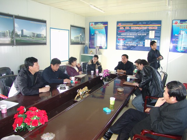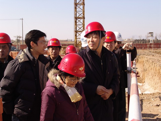 侯光明副书记在与现场施工管理人员进行研讨,希望抓好进度和质量的同时,还要注意安全问题。
