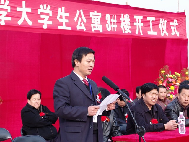 房建集团副董事长杨曾宣布学生宿舍楼正式开工