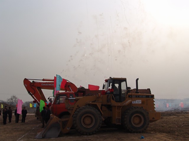 现场机器轰鸣,鞭炮、礼花齐放,预示着良乡校区美好的未来。