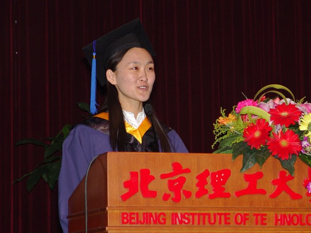 材料科学与工程学院吕广庶教授代表指导教师在典礼上发言。祝贺同学经过几年来的寒窗攻读和勤奋工作圆满完成了学业,并嘱咐同学们要积极践行社会主义荣辱观,发扬“团结勤奋、求实创新”的北理精神,在建设社会主义和谐社会中再创佳绩。