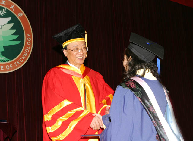 校长兼研究生院院长匡镜明教授为毕业的研究生代表授予学位,并颁发学位证书、合影留念。