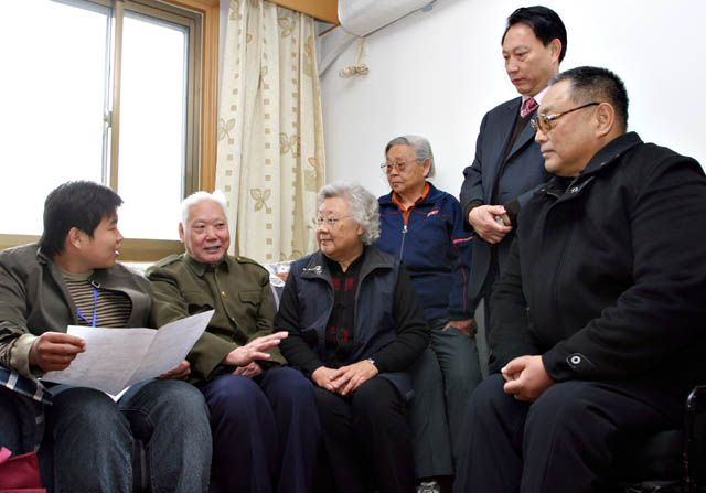 启动仪式结束后,邓朴方随同调查员深入我社区离休干部伤残军人张晨光家进行调查。全体调查人员同时进入134单元居民户中展开抽样调查工作。