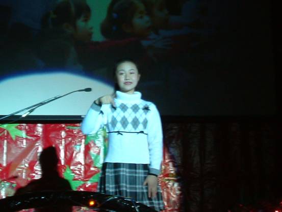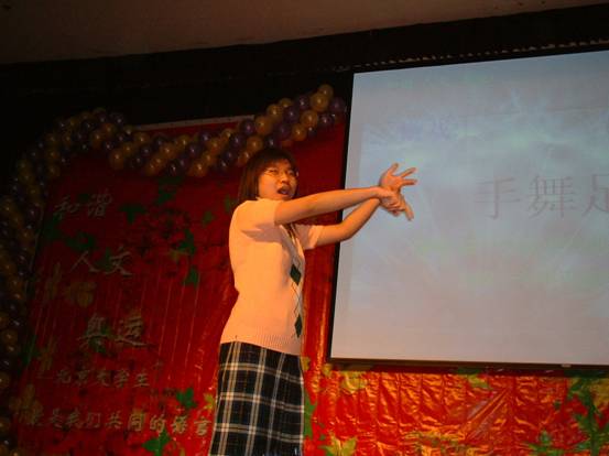 第二聋哑学校的韩思琦同学用她自信的声音和娴熟的手语向观众介绍节目