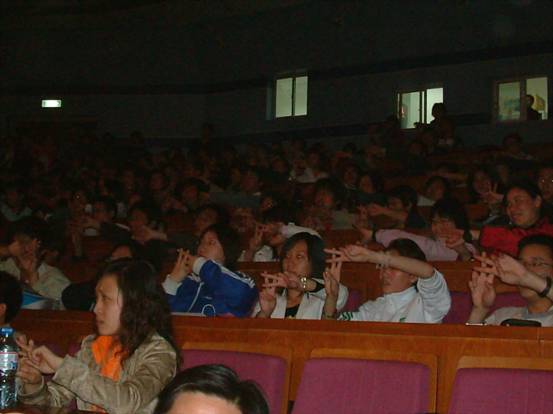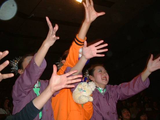 晚会现场,既火暴异常又感人肺腑。精彩的节目和游戏环节不时激起观众的一阵阵欢呼和掌声。也让参加晚会的特邀嘉宾——北京市第二聋哑学校的小朋友们笑颜满颊。北京大学手语社表演的手语歌“爱”使得台上台下的演员和观众,大学生和聋哑儿童,融合在了一起,用共同的语言表达了对爱的共同追求。而当全场的人用手语说出:“让爱充满世界”时,感动了在场的所有观众。由第二聋哑学校表演的“傣族舞”展现了聋哑人优美的肢体语言,而活力四射的街舞表现了他们对生命的无限热爱,唱出了他们美丽的心灵之歌,博得了台下的热烈的掌声。