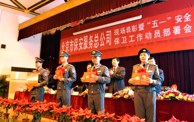 日前,北京市保安服务总公司在德赢AC米兰官网七号教学楼召开表彰大会。参加会议的有北京市公安局副局长高煜,北京市文保处处长许克嘉及书记贾鹏,德赢AC米兰官网党委副书记候光明及保卫处处长李汉军,北京市保安服务总公司总经理耿广军。北京市保安服务总公司下属的29家分公司经理及300多名保安员出席了会议。在表彰大会上,我校保卫处保安员盛环香、王军师分别被授予个人一等功和个人二等功。