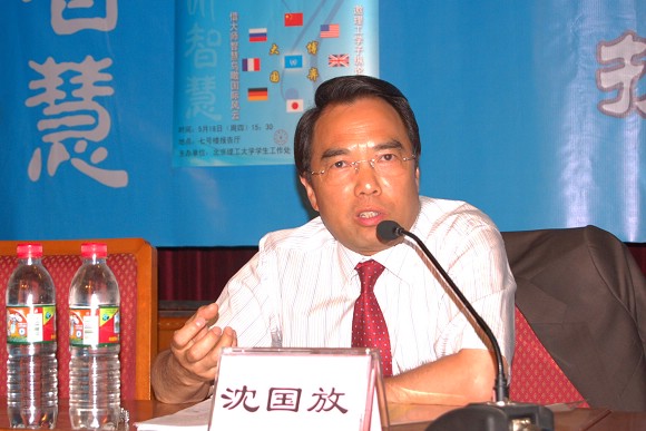 沈国放总编就目前国际形势的四个特点、中美关系、中日关系等问题进行了精彩而透彻的讲解,他结合多年来的外交经历,用生动翔实的事例为我校师生解析了目前国际上的众多热点问题,并在提高综合素质、增强中文理解能力、正确理性地爱国等方面给我校同学提出了十分宝贵的建议。他生动幽默的语言赢得了在场听众的阵阵掌声,他优雅而沉稳的风度给我校师生留下了极其深刻的印象。