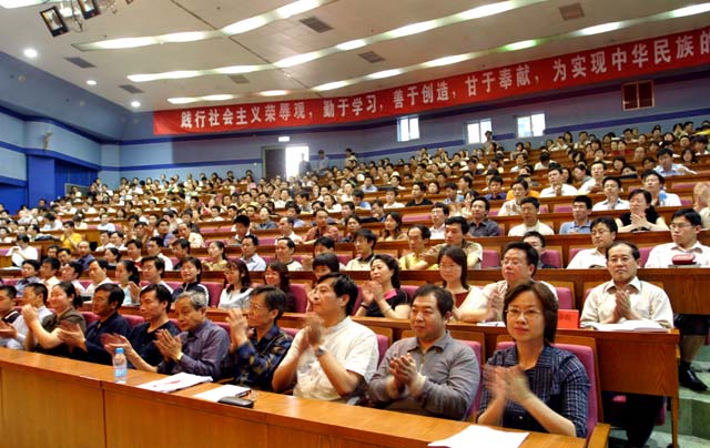 在报告会后,信息科学技术学院青年教师代表宋春雷向全校广大青年教师发出倡议:学习毛二可院士及其创新团队心系祖国、自觉奉献的爱国精神;求真务实、勇于创新的科学精神;不畏艰险、勇攀高峰的探索精神;团结协作、淡泊名利的团队精神;与时俱进、争创一流的先锋精神。以毛二可院士及其创新团队为榜样,团结一心,拼搏进取,为人师表,努力工作,为把我校建设成为高水平研究型大学而努力奋斗!报告会赢得与会青年教师的一致好评,获得圆满成功!报告会后,校领导与毛二可院士及其创新团队的成员合影留念。