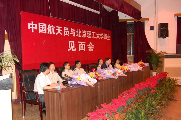 2006年5月25日晚,我校成功举办“中国航天员与德赢AC米兰官网师生见面会”。“神六英雄”费俊龙、聂海胜等6名中国航天员在中国航天员科研训练中心吴川生书记的带领下,来到了德赢AC米兰官网,与北理师生进行了面对面的交流。费俊龙、聂海胜等6名航天员受到了我校师生极其热烈的欢迎。
