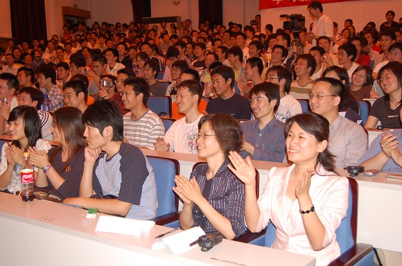报告会的门票在3个小时内被学生们领取一空,在见面会现场过道两侧站满了没有票的同学,在会场外的窗前也围满了因场地有限而不愿离去的同学。