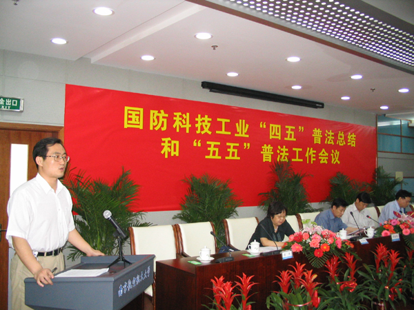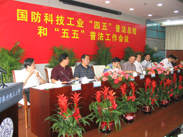 2006年6月9日,国防科工委在南京航空航天大学召开了“国防科技工业“四五”普法总结和“五五”普法工作会议”。国防科工委副主任虞列贵、中共江苏省委常委、省政法委书记林祥国以及国家司法部的领导参加了会议。会议对国防科技工业“四五”普法工作做了全面总结,并出台了“五五”普法规划。据悉,这是全国行业系统中首家启动“五五”普法工作的单位。我校党委副书记赵平带领党委宣传部部长贺亚兰、保卫部(处)长李汉军、人文社会科学学院法律教师于兆波出席了会议。