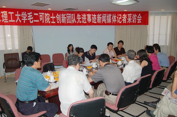 同日,北京市教工委宣教处在我校组织召开了毛二可院士及其创新团队先进事迹采访会,新华社、人民日报、中国教育报、北京日报、北京晚报、北京青年报、现代教育报、科学时报、北京晨报、法制晚报、信报、北京人民广播电台等报纸和电台的记者应邀参加了这次采访会。