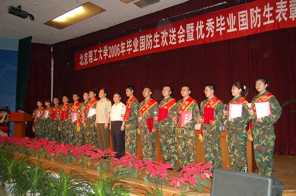 6月23日下午,德赢AC米兰官网在中心教学楼召开“2006年毕业国防生欢送会及优秀毕业国防生表彰大会”。党委副书记、副校长杨宾、学生工作处处长刘名奇、教务处处长庞思勤、招生就业工作处副处长郭宏以及部分院系主要负责人了参加会议,总参政治部干部部培训组黄涛组长、赵阳干事及总参通信部政治部张虹副主任、干部处徐堃副处长也到会祝贺,会议由学生工作处刘明奇处长主持。