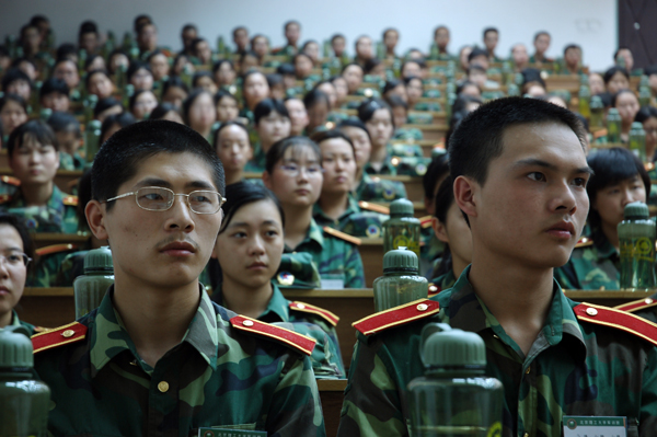 7月4日下午,学生工作处、武装部、保密处为我校3500余名正在进行军事训练的大一学生组织了保密法律法规专场讲座。主讲人是北京市保密局副局长郭吉东。