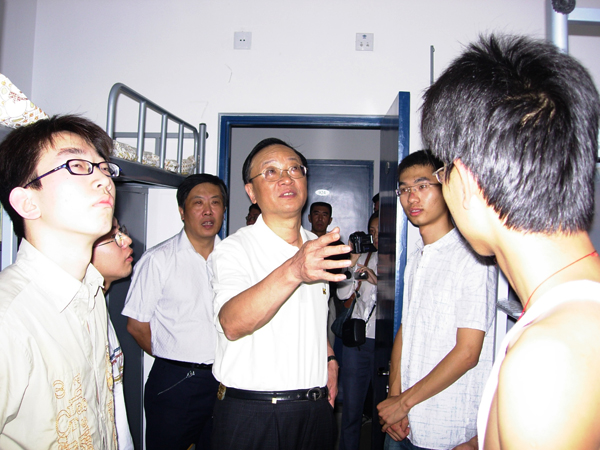 9月16日下午4点,校领导分别在各院、部、处领导陪同下到学生宿舍,看望和慰问了06级新入校学生。