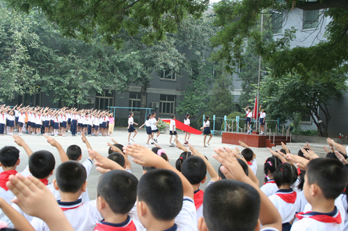 9月1日,理工附小全体师生欢聚在校园里,举行本学期第一次盛大聚会—开学典礼。