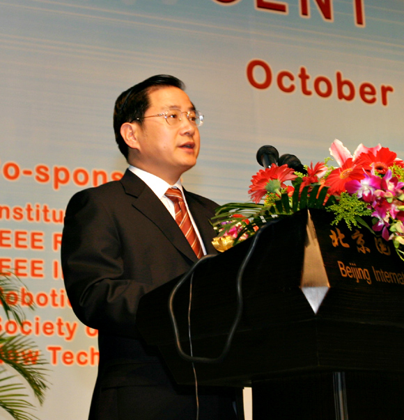 国防科工委金壮龙副主任在开幕式上讲话。他表示,智能机器人的研究是国防科技的组成部分,国防科工委将继续重视和支持开展智能机器人研究。
