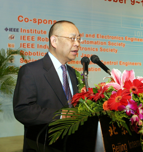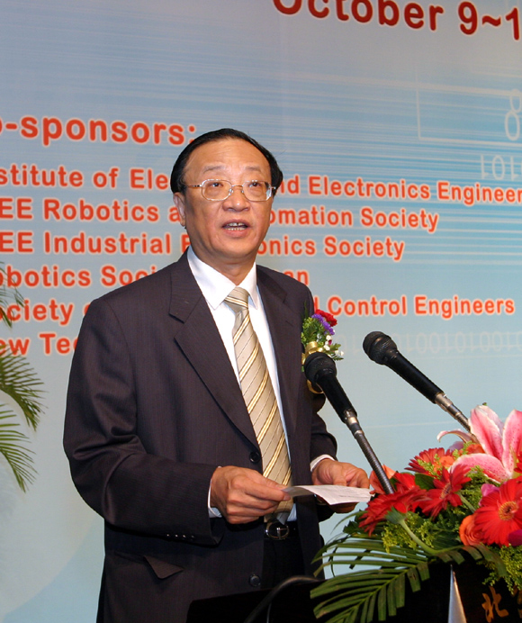 10月11日上午8点,由我校与IEEE机器人与自动化协会、日本机器人学会共同主办的2006年IEEE/RSJ智能机器人与系统国际会议在北京国际会议中心隆重开幕。我校校长匡镜明、常务副校长李志祥,及国防科学技术工业委员会副主任金壮龙、中国科协书记处书记冯长根、科技部高新司自动化处处长蔡文沁等领导出席了开幕式。