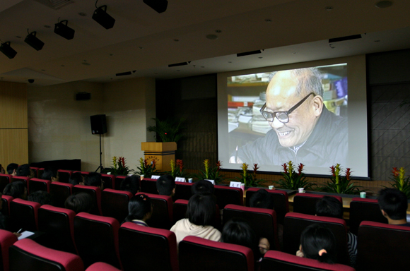 校领导与师生一起观看了沈老的影像资料片和沈鸿先生生平事迹展。