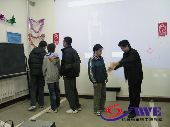 老师与同学一起玩游戏让联欢会的气氛更融洽