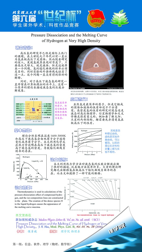 of Hydrogen at Very High Density 侯吉旋(硕士) 理学院物理系 三等奖