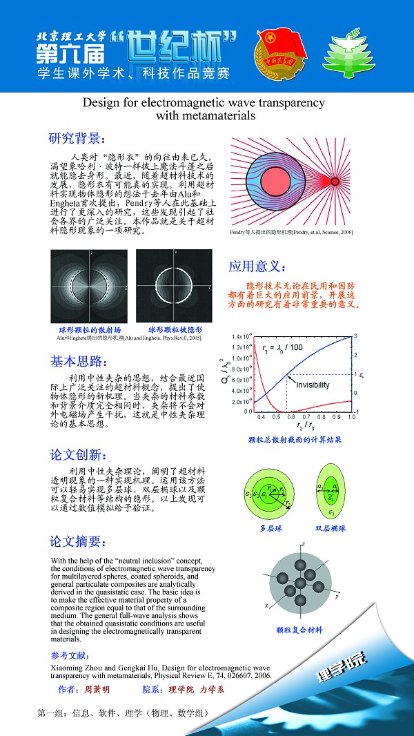 隐形材料研究 周萧明(博士) 理学院力学系 三等奖