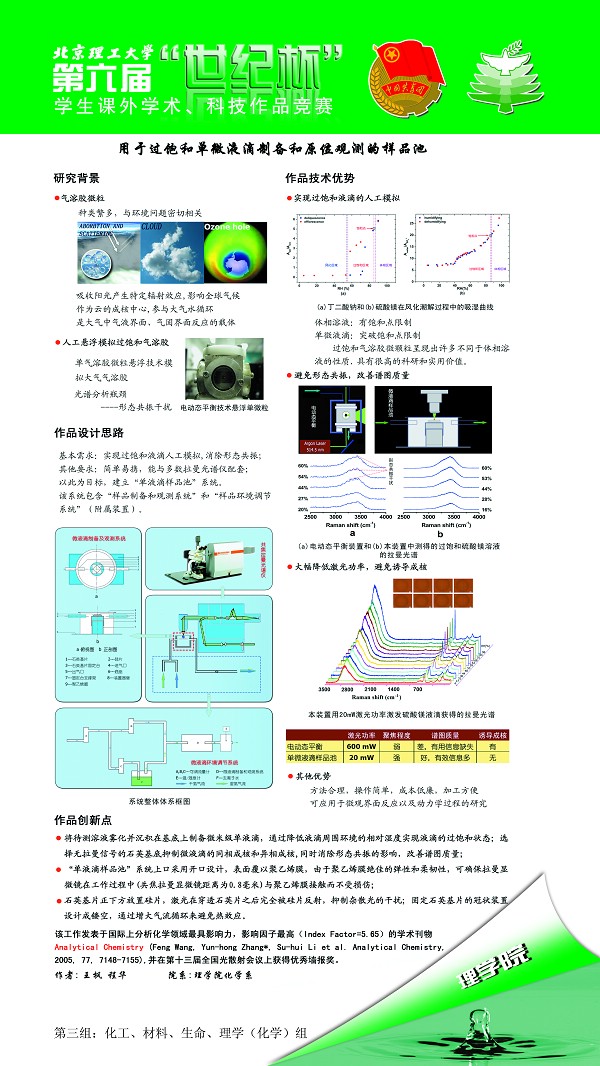 用于过饱和单微液滴制备和原位观测的样品池 王枫、程华(博士)理学院化学系 一等奖